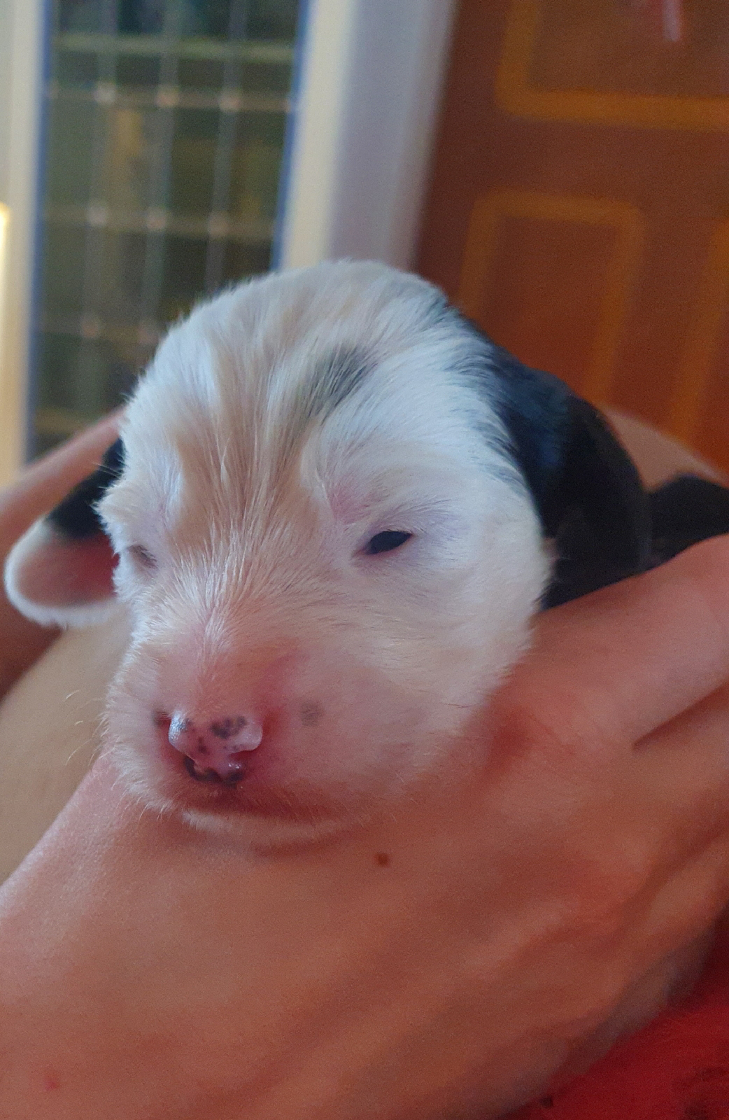 Og så åpner de øynene. Først bare som små sprekker, etterhvert større og større åpninger. Det tar tid før de ser ordentlig selvom øynene er åpnet. I begynnelsen ser de bare skygger og lys, men gradvis blir det klarere. Det samme skjer med ørene og i løpet av andre uka opplever jeg at valpene begynner å løfte på hodet når jeg kommer. De begynner å høre meg. Og gradvis tar de i bruk syn og hørsel til å orientere seg i verden. Men foreløpig er det lukt, smak og følelsen av mors varme som er dominerende sanser.